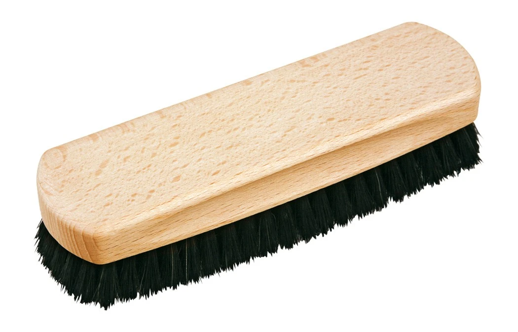 Wooden shoe shine brush with untreated beechwood & black horsehair. Medium brush used after applying polish brings out the shine.