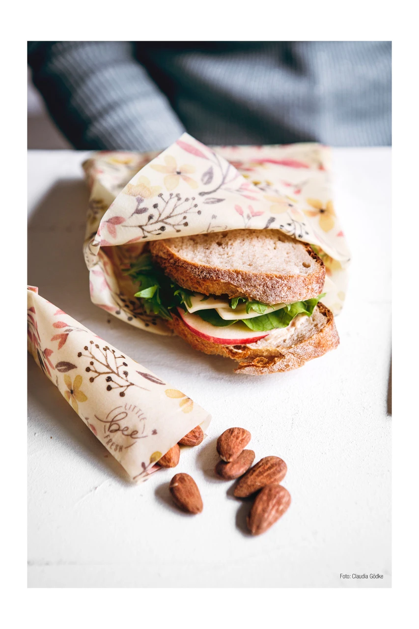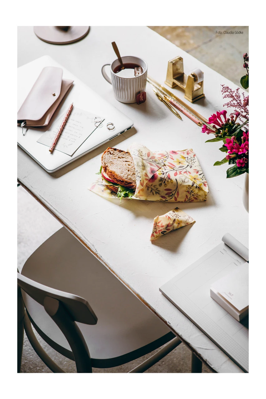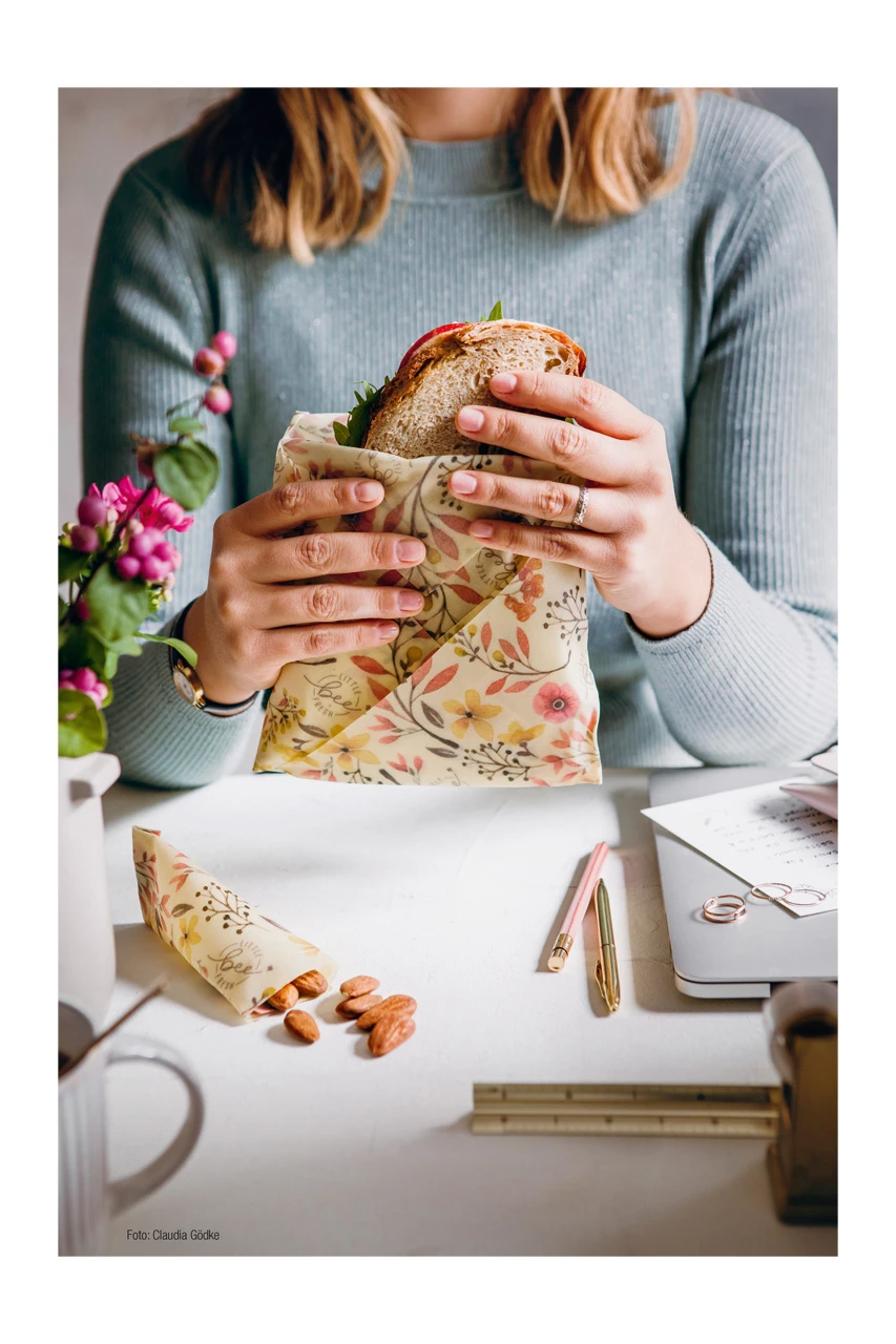 Set of 3 – S, M, L The beeswax cloth is a sustainable companion for everyday life. Pack your food plastic-free! For use in the office, at school, on the road, or in the kitchen. You can simply cover bowls and dishes, leftover vegetables, fruits and bread or wrap food completely in the cloth. The warmth of your hand makes the wax cloth flexible and formable enough to adhere to all smooth surfaces and to itself. Only the best ingredients are used for these beeswax cloths, which are handmade in Germany. Not suitable for packing sausage, meat or fish. Material: 100% Organic Cotton Beeswax ‘kbI’ (from monitored organic beekeeping), Organic Jojoba Oil & Tree Resin Dimensions S: 15 x 15cm M: 25 x 25cm L: 35 x 35cm Easy to clean with cold water and mild dish liquid. Reuse for months.
