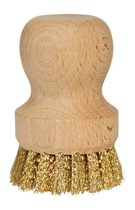Brass wire hob, bbq brush with wooden handle untreated beechwood.