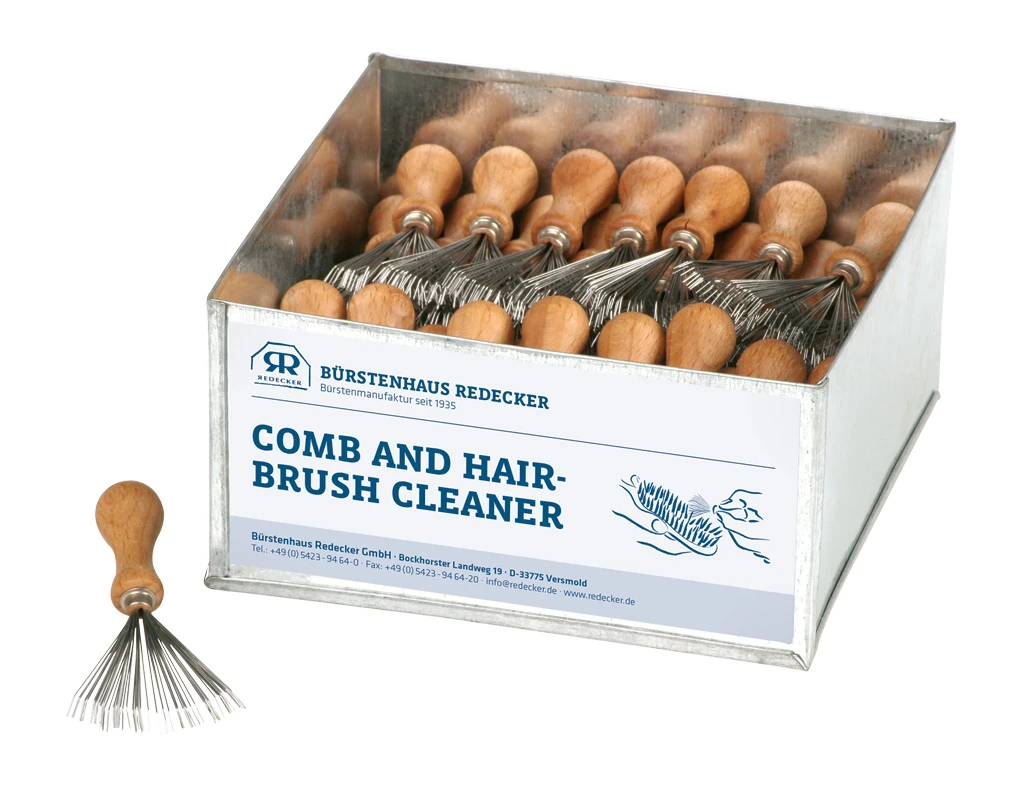 Keep your hairbrushes hair-free and ready for their next styling or brushing session with a hairbrush cleaning comb. The wire hairbrush comb captures loose hairs from between bristles and pins on any hairbrush, pulling them with the fine wire ‘teeth’ and making hair removal easy. With a contoured, oiled beechwood handle for easy grip! The details… Oiled beechwood Size: 7.5m.