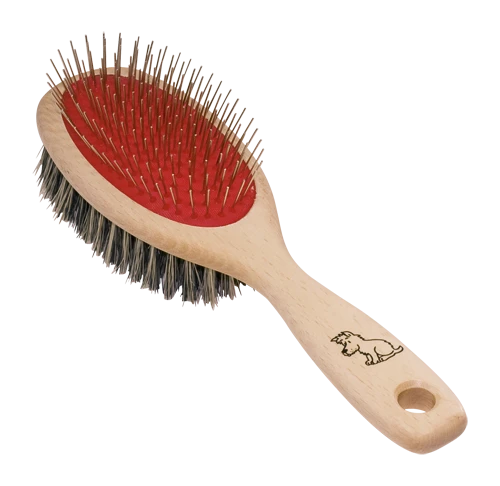 A top quality minimalist design, this dog brush was crafted by master brush makers Bürstenhaus Redecker in Germany.Specially designed from natural materials to care for your dog’s fur, this brush features an expertly made waxed beechwood handle and two sides of bristles – one is a blend of union and tampico fibre bristles (sourced from Agave and Yucca unique to Mexico), the other side features metal pins that are designed for brushing matted coats.For the best fur care on your dog.Waxed beechwood, with tampico fibre / union fibre on one side and metal pins on the other.Size: 23.5 cm