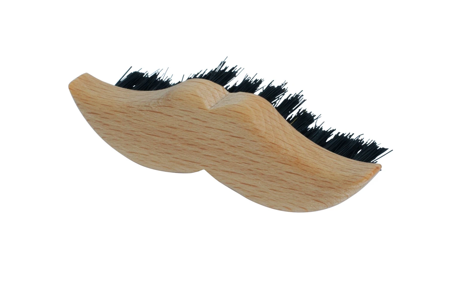 Moustache shaped beard brush. Oiled beechwood, stiff bristle.