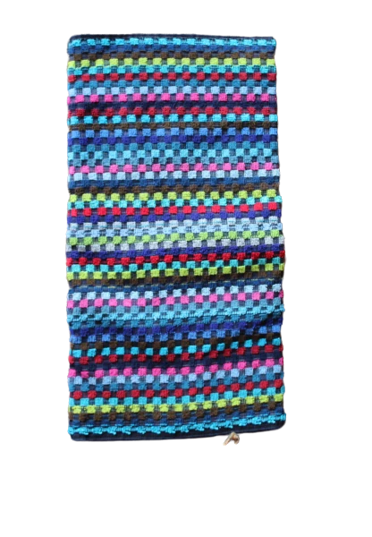 Featuring a multi coloured design throughout the body, its complimented by a dark blue trim along the edge.