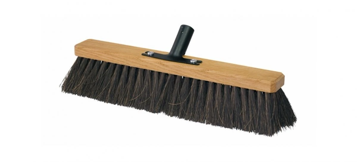 Oiled ashwood broom head with arenga fibre bristle for unthreaded handle. For outdoor use only.