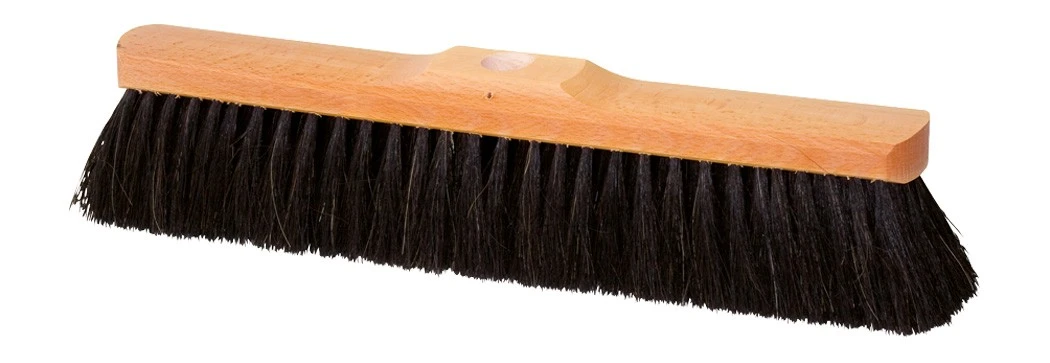 Oiled beechwood indoor broom head with horsehair bristle for unthreaded handle. Suitable handle 001020.