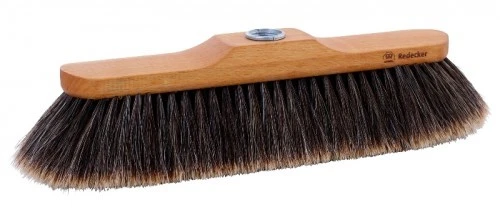 Oiled beechwood indoor broom head with split horsehair bristle for threaded handle.