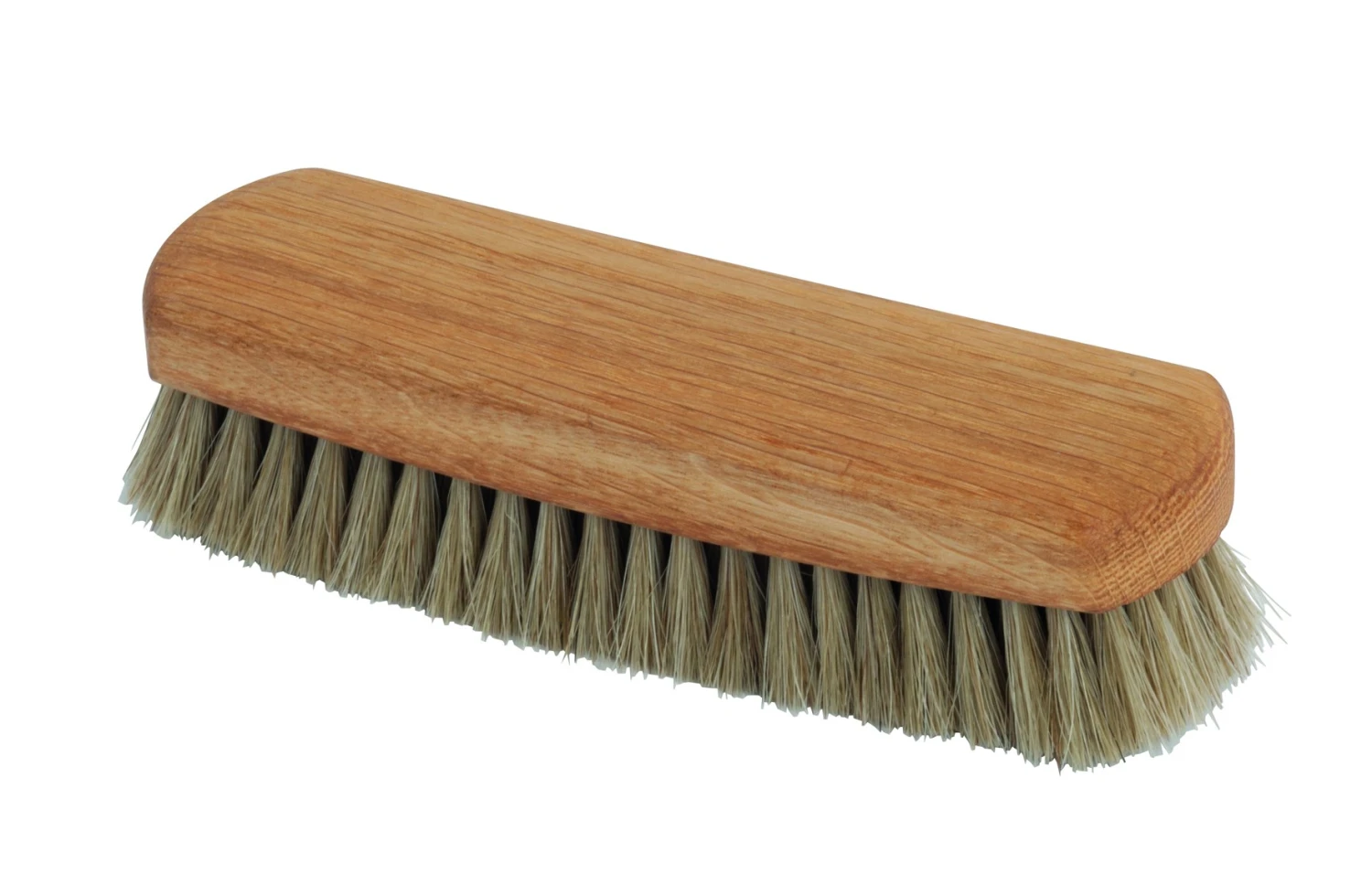 Wooden shoe shine brush with oiled oakwood & light horsehair. Medium brush used after applying polish brings out the shine.