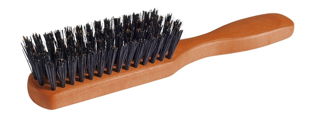 Wooden hair brush & hanger with oiled pearwood & black bristle.
