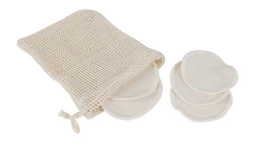 These fabulous environmentally-friendly and reusable makeup removal pads come in their own laundry net. They come in a set of 5 and are washable at 30°C. Cotton makeup removal pads, with one soft and one textured side, ideal for removing makeup and cleaning the face. Of course, they can also be used for applying skin care products. 100% cotton Size: Ø 8 cm