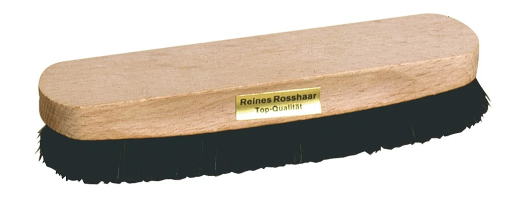 Wooden shoe shine brush with untreated beechwood & black horsehair. Large brush used after applying polish brings out the shine.