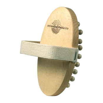 Wooden anti-cellulite brush with waxed beechwood & a cotton belt. Great for smoothing out the skin. Aids circulation and brightens complexion.