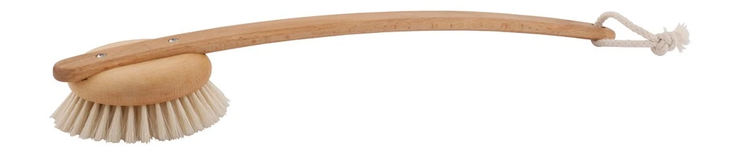 Wooden bath brush with a round head, oiled beechwood handle & light bristle.
