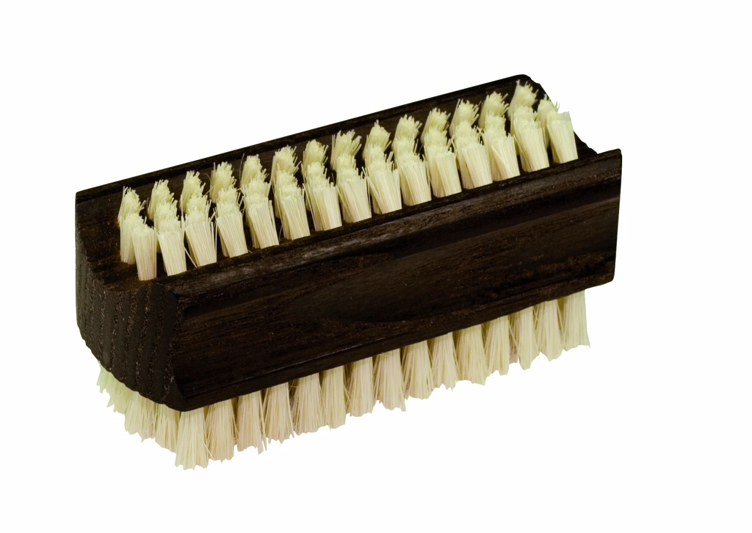 Wooden nail brush with oiled thermowood & stiff light bristle.