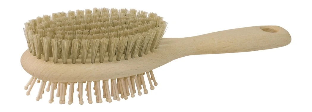 Wooden dog brush with waxed beechwood handle, light bristle & wooden pins. This brush has been designed especially with dogs in mind dual-sided, bristle and wooden pins. It’s made for the ultimate groom.