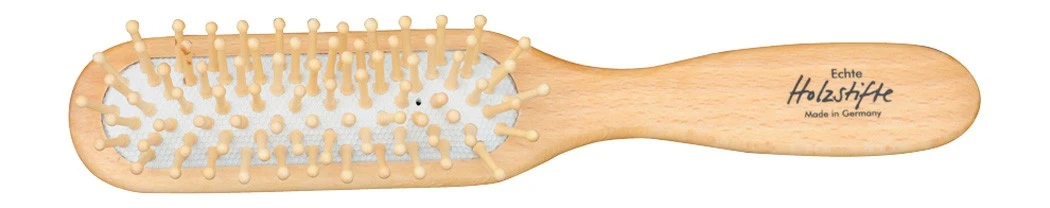 Wooden long hairbrush with waxed beechwood & rounded maple wood pins.