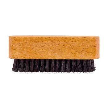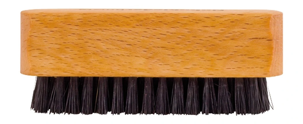 Wooden nebuk leather brush with waxed beechwood & wild boar bristle.
