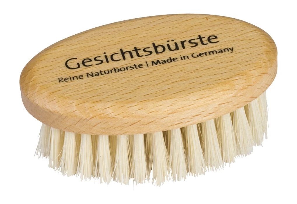 Wooden oval shaped face brush with oiled beechwood & soft, light bristle.