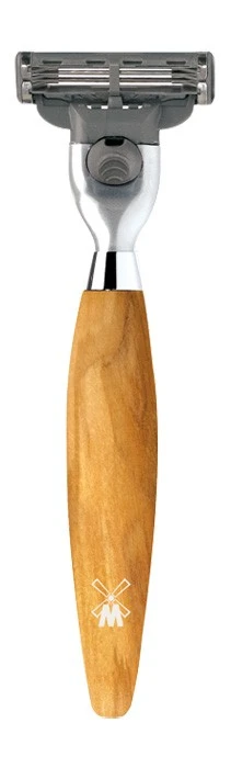 Wooden razor with 3 blades & an oiled olive wood handle. This would make a wonderful gift for the man in your life. Fits Mach3 blades.
