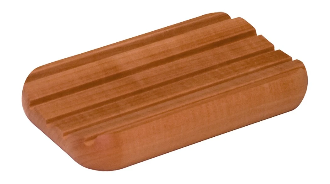 Wooden soap dish with oiled pearwood & rubber feet to aid standing.