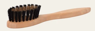 Wooden suede brush with oiled beechwood handle & brass with bristle edge.